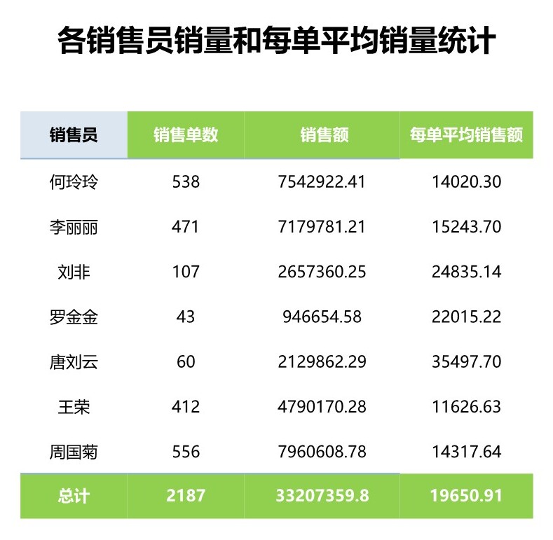 销售数量统计表