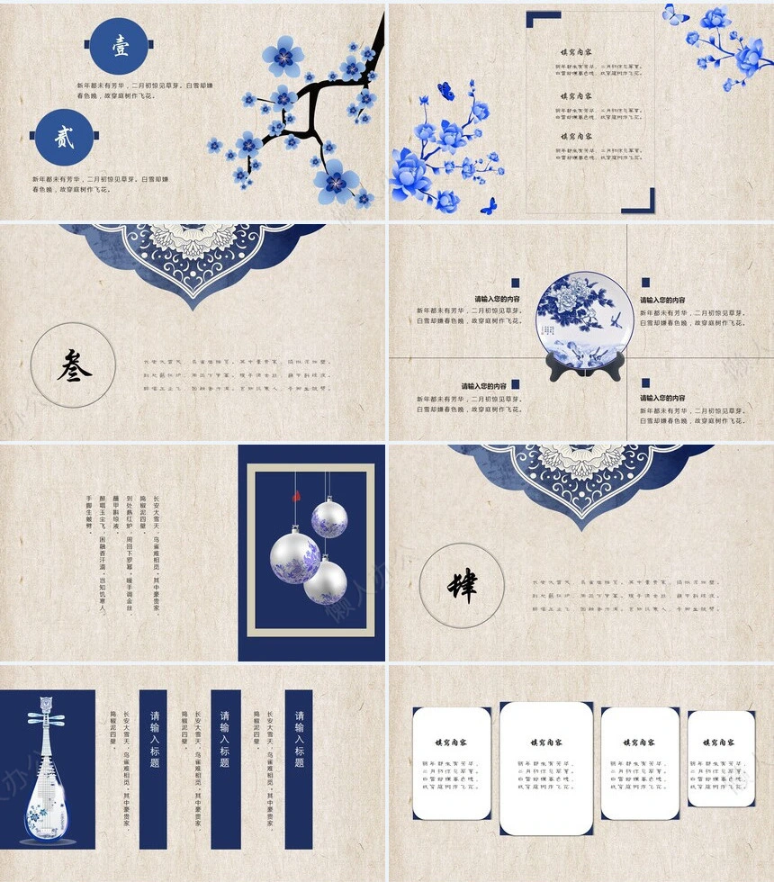 古韵培训课件通用PPT模板适用述职报告个人简介工作总结会议报告