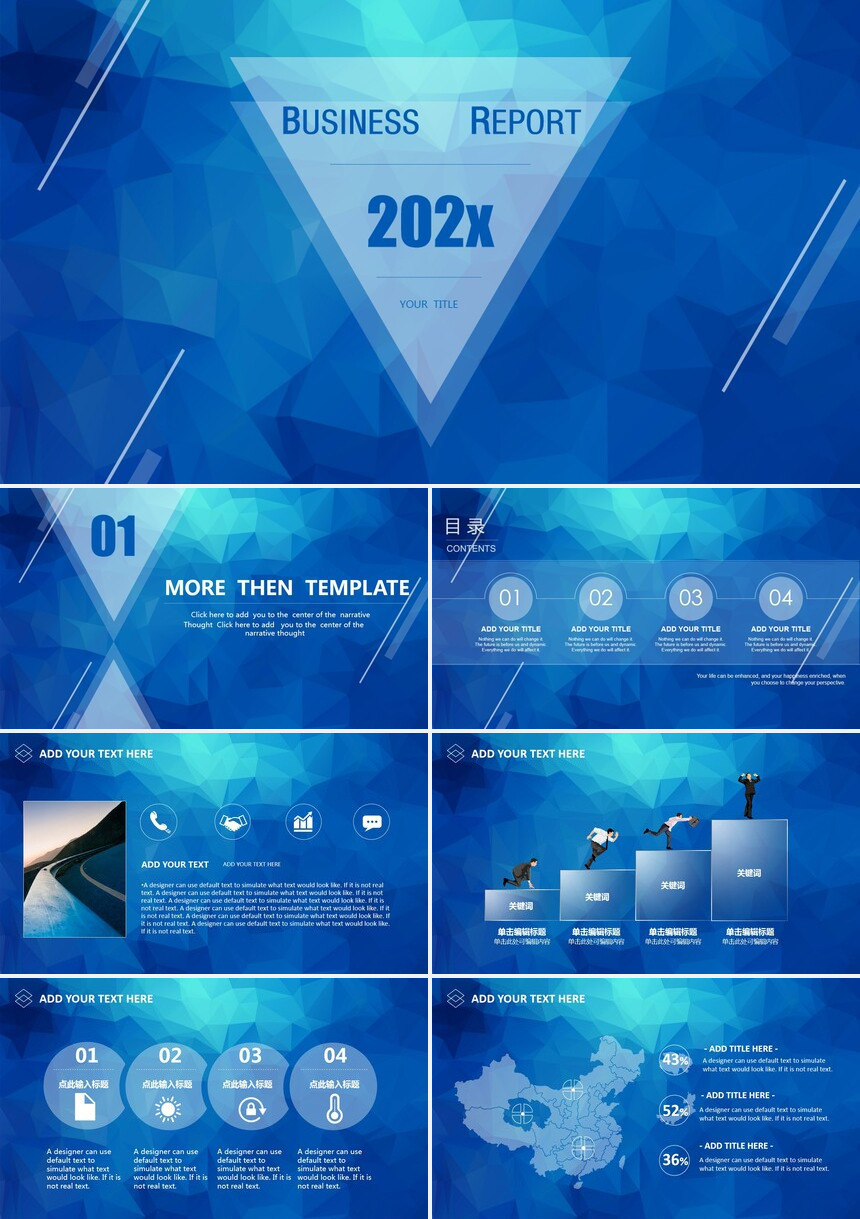 2023欧美蓝色长阴影PPT模板
